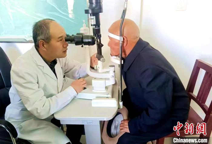 圖為援藏眼科專家張升慶為普蘭縣眼疾患者做檢查。尼瑪次仁 供圖