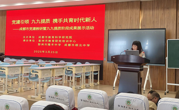 陽春三月,齊聚彭州共教研。為全面貫徹落實(shí)黨的二十屆三中全會(huì)和全國(guó)教育大會(huì)精神,系統(tǒng)推進(jìn)黨的教育方針和黨中央決策部署在中小學(xué)得到貫徹落實(shí),堅(jiān)持“為黨育人、為國(guó)育才”。3月25日下午,彭州市隆豐中學(xué)開展成都市黨建教研暨“九九提質(zhì)”階段成果展示活動(dòng)。