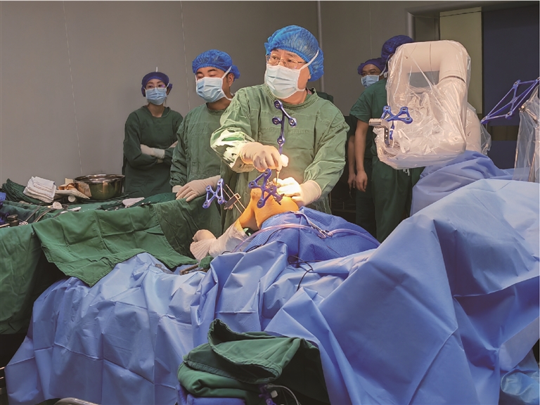 重慶援藏醫(yī)療專家開(kāi)展西藏首例5G遠(yuǎn)程國(guó)產(chǎn)機(jī)器人全膝關(guān)節(jié)置換手術(shù)。