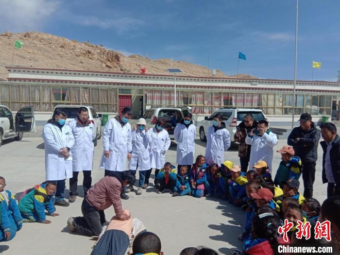 醫(yī)療隊(duì)為波絨鄉(xiāng)中心小學(xué)師生進(jìn)行心肺復(fù)蘇現(xiàn)場(chǎng)培訓(xùn)。 煙臺(tái)援藏醫(yī)療隊(duì)供圖