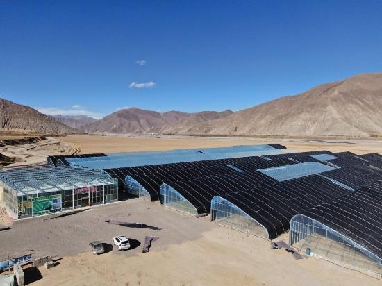 圖為濰坊市第七批援藏工作組引進(jìn)龍頭企業(yè),投資9000萬建設(shè)的數(shù)字農(nóng)業(yè)產(chǎn)業(yè)園項(xiàng)目。該項(xiàng)目在帶動(dòng)并提升南木林縣互聯(lián)網(wǎng)+現(xiàn)代農(nóng)業(yè)發(fā)展水平,助力鄉(xiāng)村振興發(fā)揮了重要作用(圖為無人機(jī)航拍)。扎巴旺青 攝
