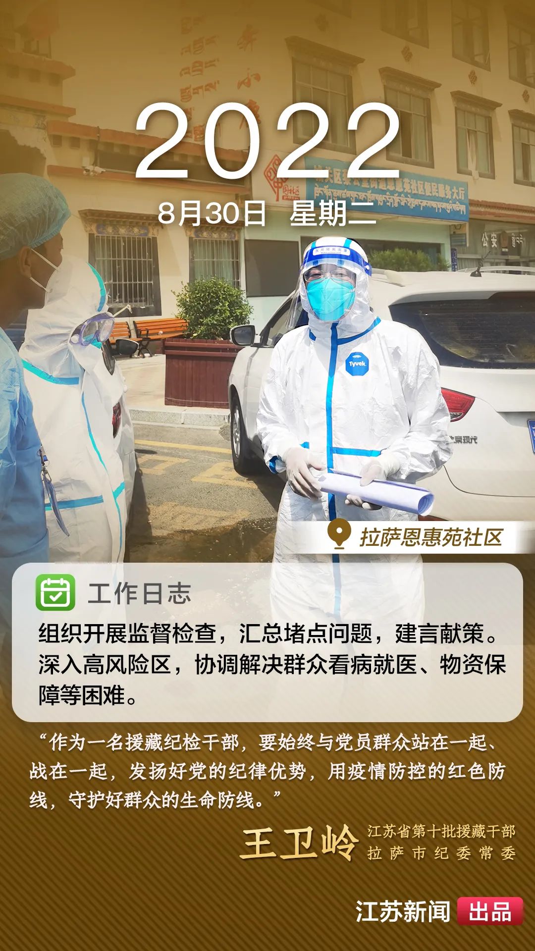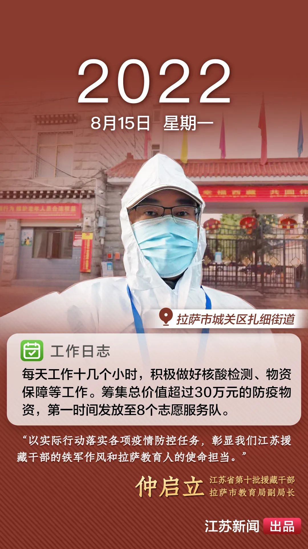 2022年8月,一場突如其來的新冠肺炎疫情襲擊拉薩。江蘇援藏前方指揮部樹立高度的政治意識,堅決貫徹江蘇省委、省政府主要領導批示精神和自治區(qū)、拉薩市部署要求,全力以赴做好疫情防控工作。第十批援藏干部人才克服初到高原的身體反應,服從服務大局、勇于擔當作為,迅速投身疫情防控工作一線,以實際行動展現(xiàn)江蘇援藏的鐵軍作風。近期,我們將陸續(xù)推出江蘇援藏干部人才抗疫身影,敬請關注。