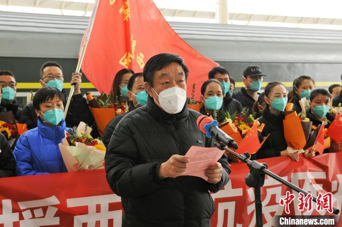 當(dāng)日,官方為醫(yī)療隊(duì)舉行歡迎儀式,工作人員手捧鮮花,以最高禮遇、最深敬意歡迎“白衣執(zhí)甲、逆行出征”的無私奉獻(xiàn)者們。青海省副省長、省疫情防控指揮部副指揮長匡湧出席歡迎儀式并講話。