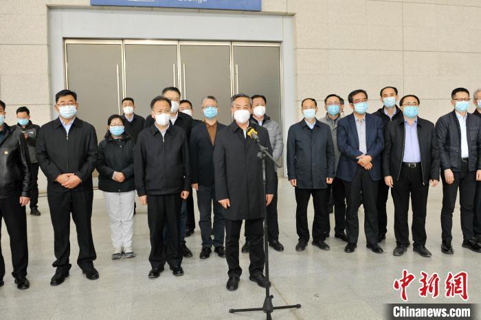 圖為青海省副省長、省疫情防控指揮部副指揮長匡湧(中)出席歡迎儀式?!≈旖ㄜ?攝