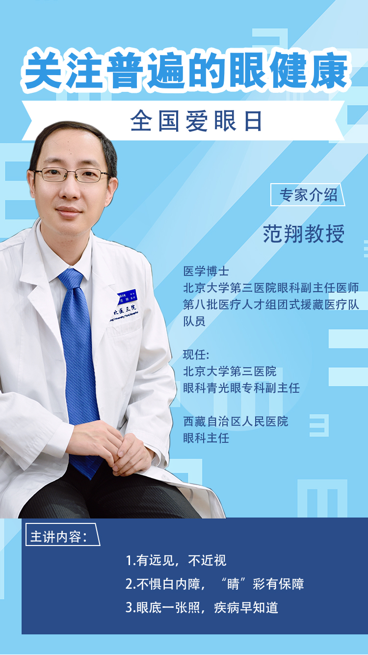 本期人物是來自北京大學第三醫(yī)院眼科專家、副主任醫(yī)師范翔,為大家總結(jié)眼病防治的常見知識。讓我們一起關(guān)注全年齡段全生命周期普遍的眼健康。