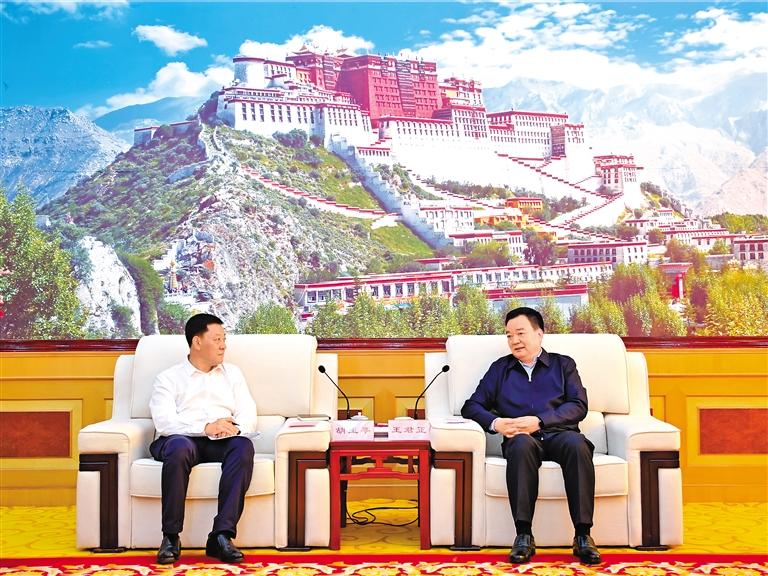 9月9日至13日,吉林省黨政代表團來藏考察。自治區(qū)黨委書記王君正與吉林省委副書記、省長胡玉亭一行座談。