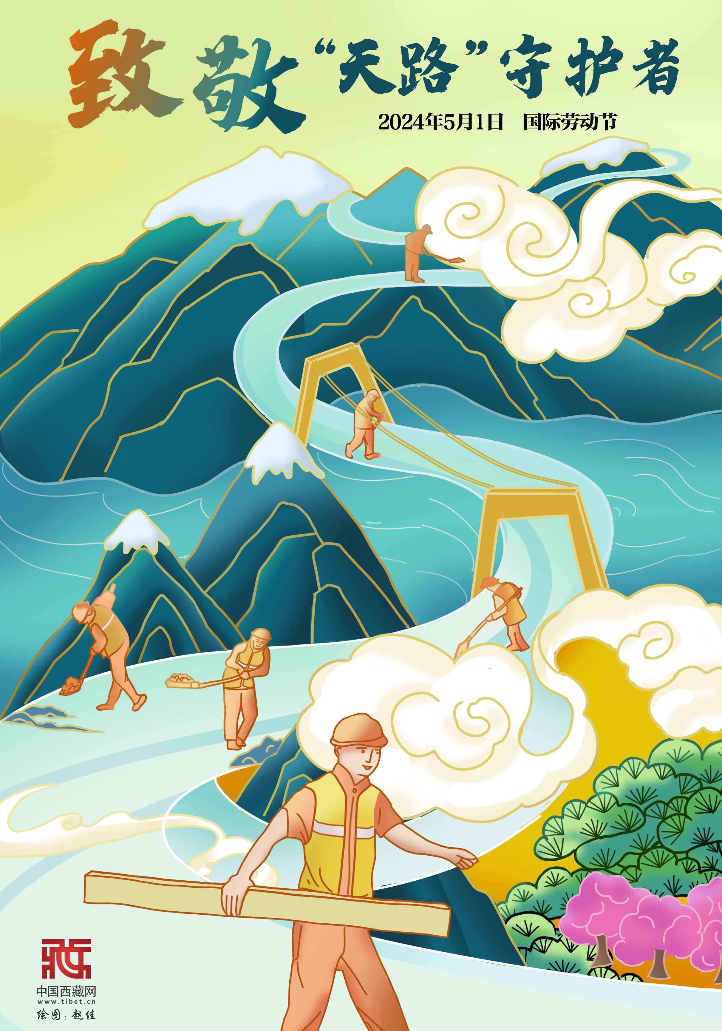 高原春光美,勞動正當時。有一種理想,于高山厚土間長存;有一種精神,在“世界屋脊”上閃耀;有一群人,用勞動寓平凡以偉大的定義。他們是常年駐守青藏公路一線的武警官兵、交警、護路工、巡護員群體,年復一年地在不為人知的平凡崗位傾注勞動心血,以血肉之軀鑄就青藏線道路交通安全的“鋼鐵長城”。