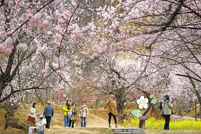 三月的林芝,桃花流水窅然去,別有天地非人間。走進嘎拉村,陣陣花香撲鼻而來,粉色的桃花與金黃的油菜花相映成趣,灼灼芳華,美得醉人。記者看到,村民圍著桃樹、桃花忙碌著,有人為花間迷向的游客指路,有人穿梭花海為游客牽馬。不少游客在景區(qū)換上心儀的藏裝,穿梭于花海,留下靚麗的身影。