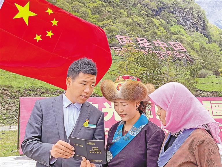 農(nóng)行西藏分行員工在山南市隆子縣玉麥鄉(xiāng)為群眾宣講金融政策和產(chǎn)品。