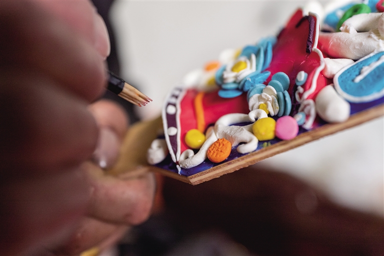 當(dāng)記者聊起如今市面上也有機(jī)器雕刻的酥油花時,師傅羅布次仁停下手中的活,說道:“酥油花是千年傳承下來的瑰寶,講究一年換一新,同樣也講究人們制作時注入的美好愿望和祝福。早在2013年,它就被列入西藏自治區(qū)級非物質(zhì)文化遺產(chǎn)名錄。如今雖然出現(xiàn)了機(jī)器雕刻的酥油花,但它們?nèi)绷舜鄠鞯牧α?,機(jī)械復(fù)制不了指尖傳遞的溫度。我們要傳承好這門技藝。”