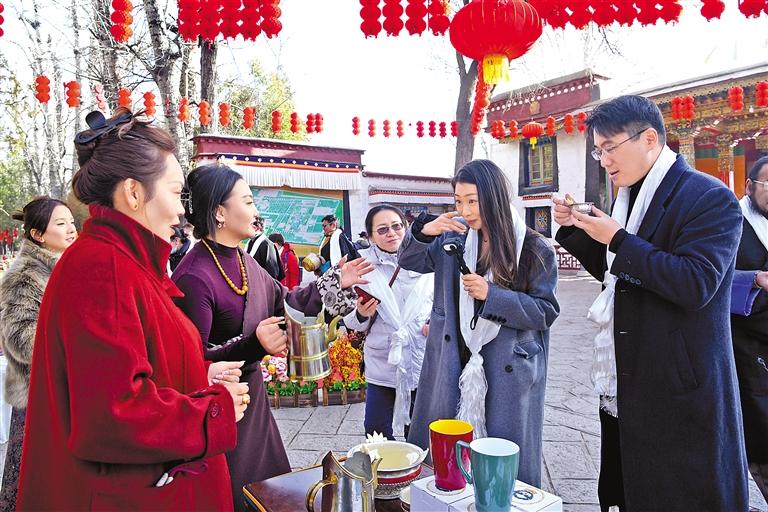 來自西安的曹女士剛體驗(yàn)完青稞酒又被工作人員遞上來的精美文創(chuàng)禮品吸引了眼球。她感嘆:“來這過藏歷新年,既能感受傳統(tǒng)藏歷新年的民俗活動(dòng),又能把藏文化帶回家,這樣的新年太有意義了!”