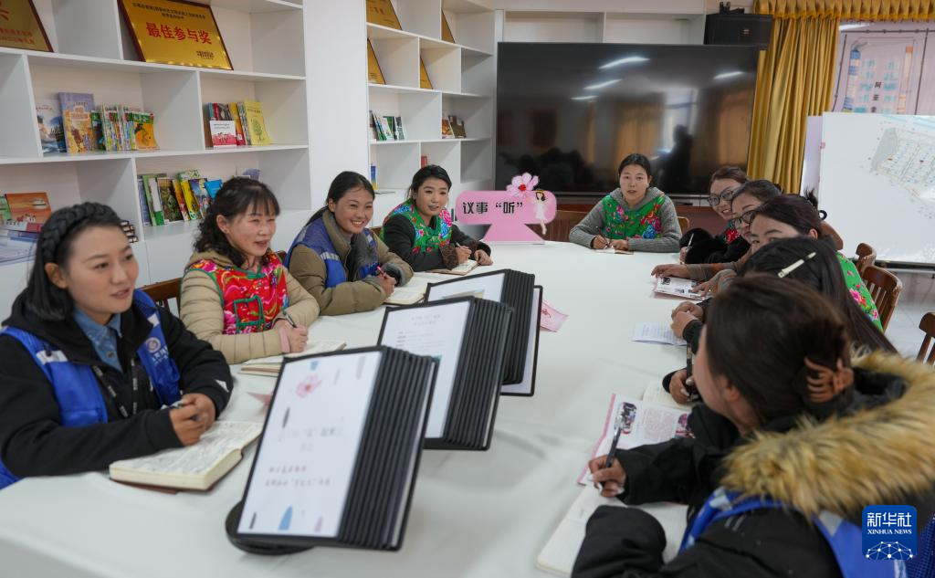 “花大姐”在商量解決社區(qū)群眾難事(3月6日攝)。新華社記者 晉美多吉 攝