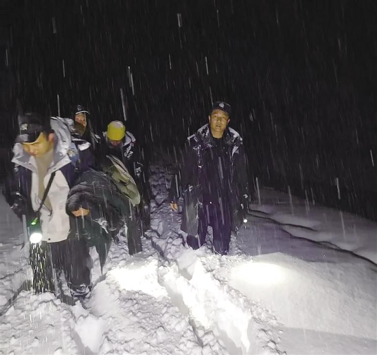 盡管如此,搜救人員沒有放棄。他們一邊緩慢前行,一邊大聲呼喊失聯(lián)人員的名字。盡管聲音在呼嘯的風雪中顯得微弱,但他們始終堅持。即便體力透支、鞋底結冰、衣服浸濕、臉頰被凍傷,也無人停下腳步。