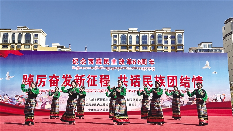 為隆重紀(jì)念西藏民主改革66周年,進(jìn)一步豐富居民群眾的精神文化生活,助力提升基層治理,3月26日,由中共拉薩市城關(guān)區(qū)塔瑪街道工作委員會、拉薩市城關(guān)區(qū)塔瑪街道辦事處主辦的紀(jì)念西藏民主改革66周年系列活動在同心公園舉辦。據(jù)了解,此次活動以“踔厲奮發(fā)新時(shí)代 共話民族團(tuán)結(jié)情”為主題,涵蓋文藝匯演和宣傳集市等,吸引了周邊眾多市民群眾參與。