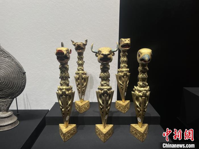 圖為展出的鐵質(zhì)鎏金獸首金剛橛。記者 岳依桐 攝