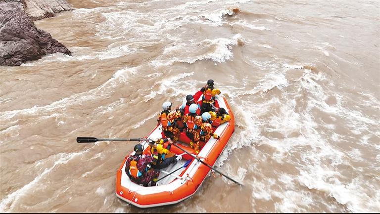 圖為游客正在體驗驚險刺激的漂流活動。記者 平措郎加 董國峰 攝