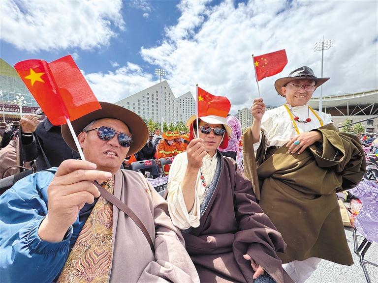 演出中,不同民族的文藝志愿者齊聚一堂。漢族、藏族、蒙古族、彝族等各民族藝術(shù)家攜手合作,用藝術(shù)搭建起溝通的橋梁。他們用歌聲、舞蹈、相聲、朗誦等多種藝術(shù)形式,深情歌頌新時代黨的治藏方略,生動展現(xiàn)西藏自治區(qū)成立60年來的滄桑巨變,傳遞民族團結(jié)的深厚情誼,讓現(xiàn)場觀眾沉浸在藝術(shù)的氛圍中。