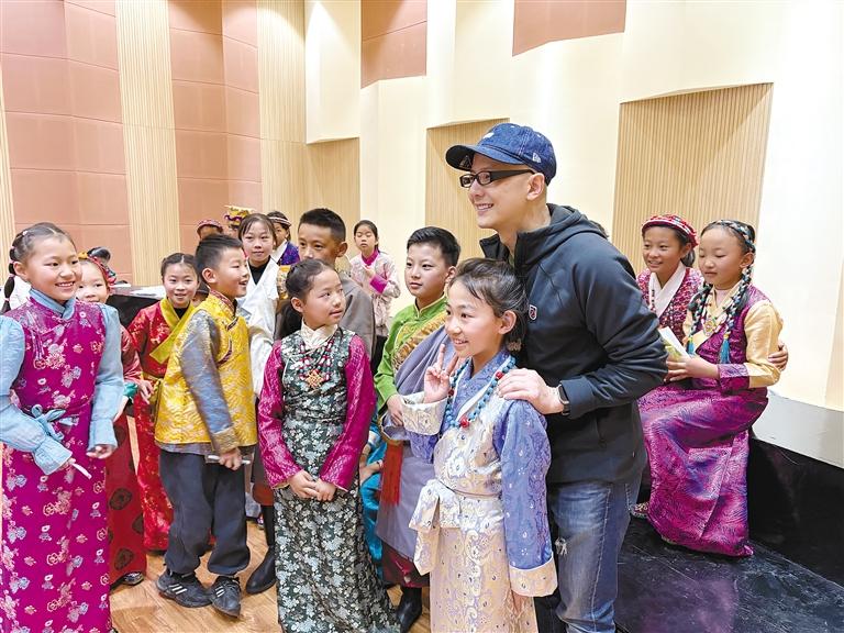 文藝志愿者與西藏珠峰少年合唱團開展暖心結(jié)對幫扶。 (圖片由自治區(qū)黨委宣傳部提供)