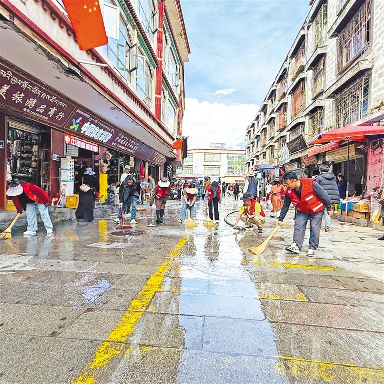 近日,拉薩市城關(guān)區(qū)八廓街道沖賽康社區(qū)黨總支開展“黨建引領(lǐng)聚合力,清潔家園促文明”環(huán)境整治活動。30余名黨員志愿者、駐社區(qū)工作隊員及網(wǎng)格員分工協(xié)作,手持清潔工具深入大街小巷,清理衛(wèi)生死角、鏟除墻面小廣告,并對廣場地面進行高壓沖洗。活動以“黨建紅”引領(lǐng)“生態(tài)綠”,推動基層治理與文明城市創(chuàng)建深度融合,為社區(qū)居民營造整潔宜居的生活環(huán)境。