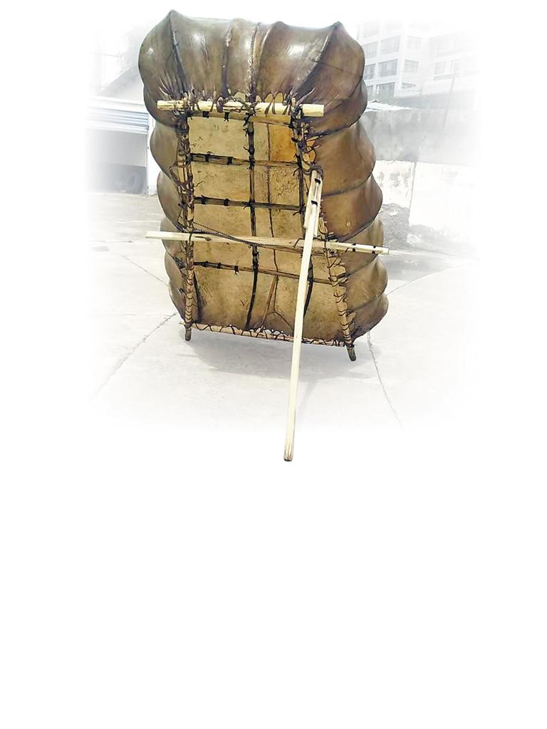 每次制作牛皮船前,手藝人先要將牛皮在水中浸泡處理,再將酥油或動(dòng)物油脂等碾碎、涂抹,經(jīng)晾曬,牛皮呈現(xiàn)黃褐色,再對牛皮進(jìn)行縫制,對針腳、線條、松緊都有一定的要求。次仁說:“所有材料備好后,在制船的最后一天,邀請村里經(jīng)驗(yàn)最豐富的牛皮船技師來完成最重要的制船工序。而在之后的船只使用過程中,還要經(jīng)常性地用酥油等油脂對牛皮船進(jìn)行保養(yǎng),防止牛皮破裂?!?/p>