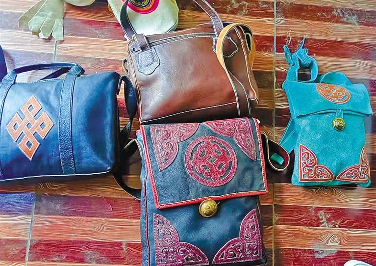 俊巴手工牛皮加工合作社的手工皮包。記者 曉勇 攝