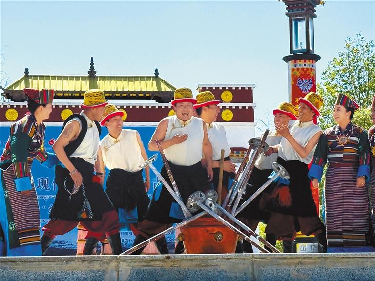 在非遺文化展示活動中,女演員身著扎扎服飾。