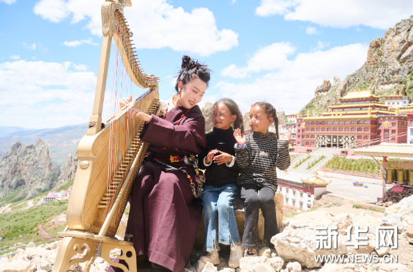 中央民族樂團(tuán)著名箜篌演奏家吳琳為藏族小朋友演奏箜篌