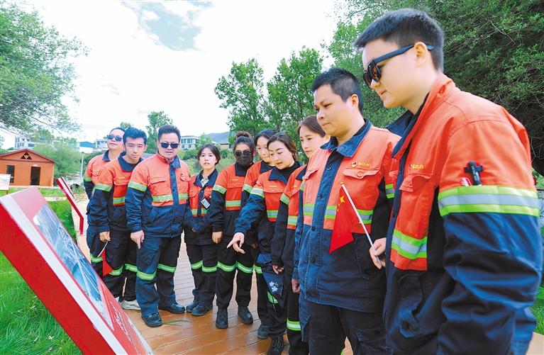企業(yè)員工在赤康村黨史館參觀學習宣傳展板。記者 格桑倫珠 攝