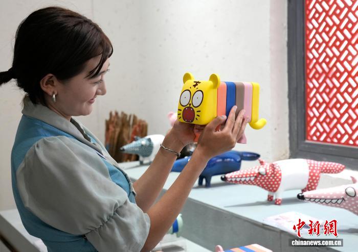 8月6日,拉薩市蓮華之寶中華藏瓷文化旅游體驗(yàn)園景區(qū)里,工作人員展示卡通陶瓷工藝制品。蓮華之寶中華藏瓷文化旅游體驗(yàn)園景區(qū)集展覽、銷售與文化體驗(yàn)于一體,通過(guò)與高校開展校企合作等方式,將唐卡繪畫藝術(shù)與陶瓷工藝結(jié)合,傳播優(yōu)秀傳統(tǒng)文化。中新社記者 李林 攝