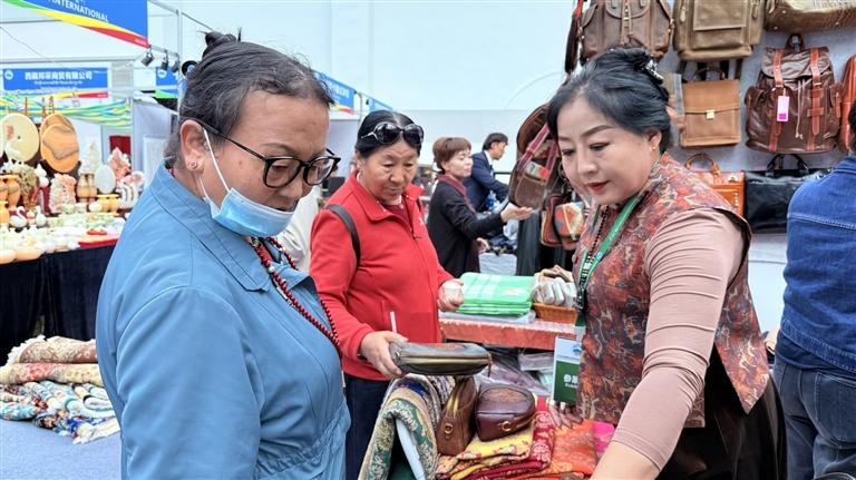 展會現(xiàn)場人頭攢動,熱鬧非凡。150家參展商帶來的特色產(chǎn)品鋪滿了各個(gè)展位,空氣中彌漫著多元?dú)庀?。法國紅酒的醇厚酒香、印度尼西亞咖啡的濃郁焦香、伊朗藏紅花的獨(dú)特芬芳交織在一起,與西藏本土青稞制品的麥香、高原蜂蜜的甜香相互映襯。在巴基斯坦展位前,參展商Asif正熱情地向顧客展示手工羊毛地毯,“我已經(jīng)連續(xù)三年參加,之前銷量都很好,這次帶來的地毯紋樣融入了藏式元素,希望能更受歡迎?!?/p>