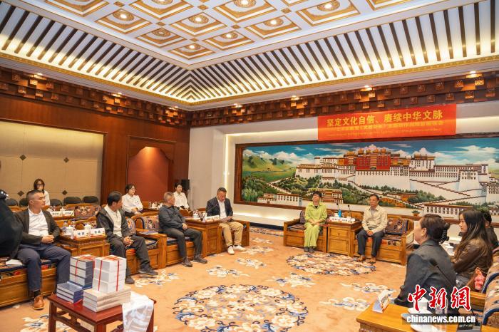 圖為8月27日,中國華夏文化遺產(chǎn)基金會(huì)向西藏博物館捐贈(zèng)《文成公主》連環(huán)畫等作品現(xiàn)場(chǎng)。(主辦方供圖)