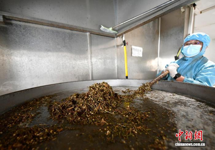 9月12日,拉薩一家藏藥浴店里,工作人員正熬制藏藥浴的藥湯。李林 攝