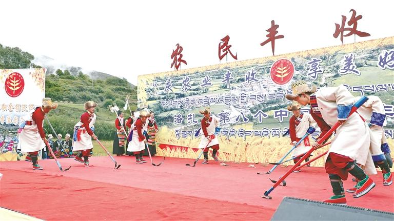圖為洛扎縣第八個中國農(nóng)民豐收節(jié)慶?;顒游乃噮R演現(xiàn)場。記者 孫開遠 攝