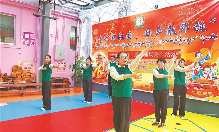 近日,拉薩市墨竹工卡縣第二幼兒園黨支部舉辦紅歌傳唱暨教師器械操展示活動,全場揮旗齊唱《今天是你的生日》。黨支部負責人表示,將持續(xù)探索推動黨建與學前教育同頻共振。