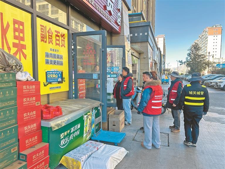 圖為林瓊社區(qū)聯(lián)合城管執(zhí)法部門開展店外店專項整治行動。記者 格桑倫珠 攝