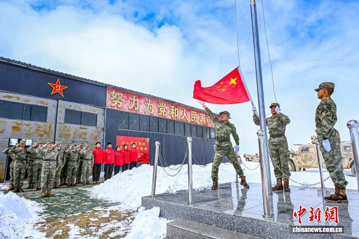 “大國(guó)邊疆”育人工程實(shí)踐團(tuán)成員赴西藏日喀則市開展思政調(diào)研,走進(jìn)“高原戍邊模范營(yíng)”哨所,與官兵共同舉行升旗儀式。(中國(guó)人民大學(xué)供圖)