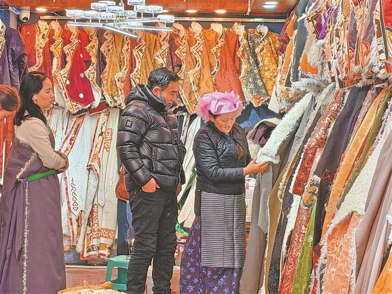 圖為市民在購買藏裝。記者 王敏 攝