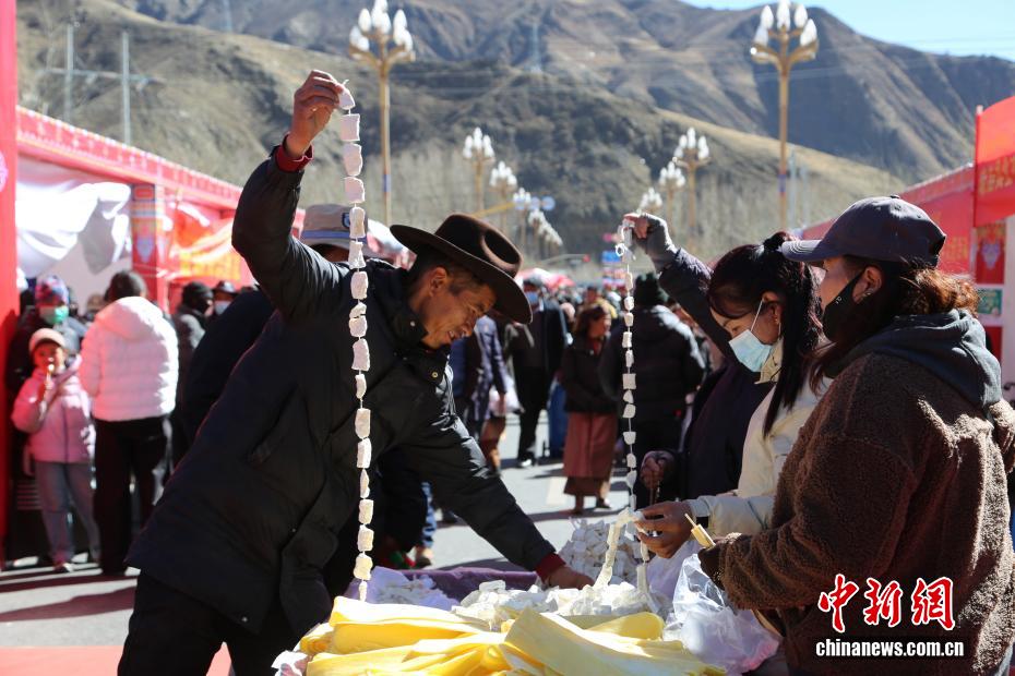 2月2日,西藏自治區(qū)山南市瓊結縣2026年“幸福瓊結·優(yōu)享年貨”促消費暨展銷活動在朗熱大道啟幕,為春節(jié)、藏歷新年預熱添彩。本次活動由瓊結縣投入200萬元人民幣打造,為期7天,吸引103家商戶入駐,其中73家為本地商戶,帶來150余種特色商品,高原農(nóng)產(chǎn)、藏式手工藝品、傳統(tǒng)年貨齊聚現(xiàn)場,盡顯藏地年味?;顒油瞥鲛r(nóng)業(yè)銀行掌銀立減優(yōu)惠,民眾無需領券即可享實惠,現(xiàn)場還設置咨詢臺與宣傳點,切實保障消費安全。圖為民眾在選購奶渣。