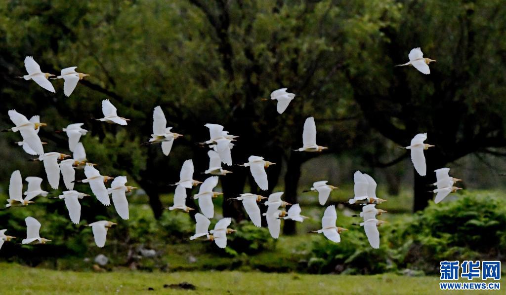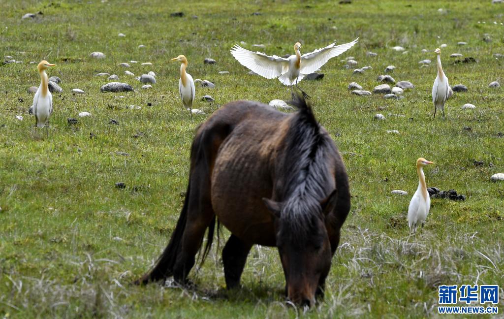 牛背鷺在易貢國(guó)家地質(zhì)公園棲息(5月22日攝)。新華社記者 張汝鋒 攝