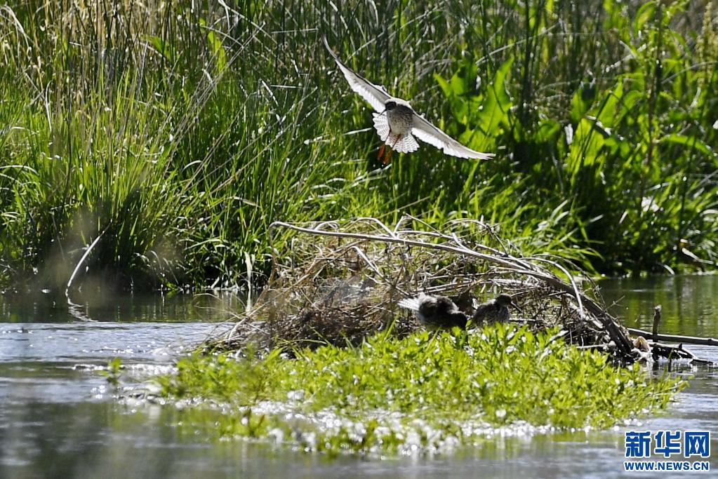 在拉魯濕地拍攝的紅腿鷸(6月2日攝)。新華社記者 張汝鋒 攝