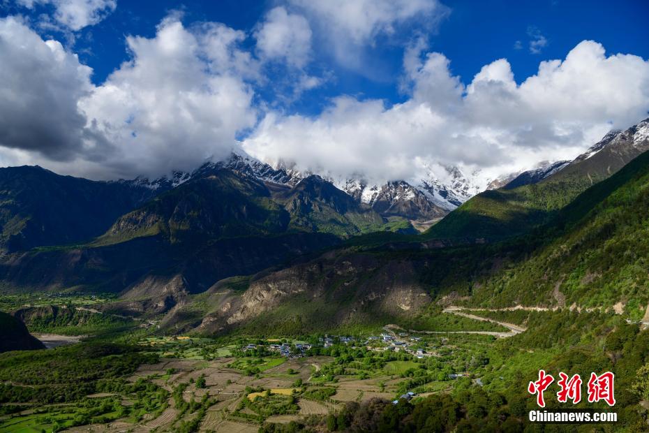 從山南市澤當鎮(zhèn)遠眺雅拉香布雪山(6月2日攝)。新華社記者 普布扎西 攝