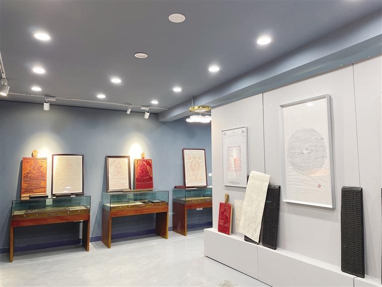 11月9日下午,“非遺+扶貧”藏族木刻雕版印刷技藝項(xiàng)目成果展在西藏雪堆白技工學(xué)校開(kāi)展。展覽主要由參訓(xùn)學(xué)員木刻雕版作品、木刻雕版衍生文創(chuàng)產(chǎn)品、木刻雕版印刷作品等幾大主題,吉祥符號(hào)系列、故事系列、日用品系列、車(chē)輛擺件、家庭擺飾系列及年歷雕版印刷品系列、古雕版印刷品系列等十幾個(gè)系列,共400余件木刻雕版作品參展。