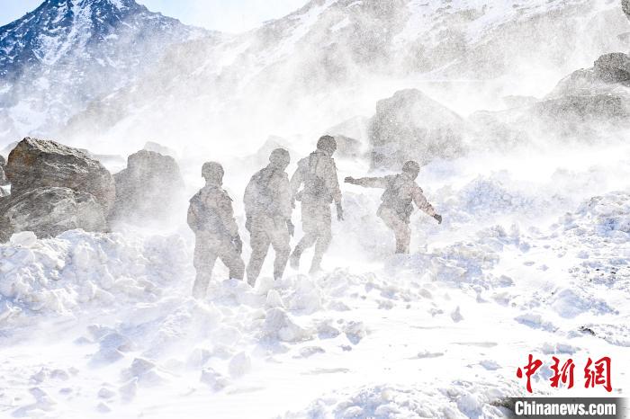 在官兵們的記憶中,最難的是大雪封山的時候,因為道路不通,車輛無法抵達(dá)的地方,都需要腳步去丈量。大家早上6點(diǎn)就得出發(fā),在狂風(fēng)中徒步30公里左右,晚上22點(diǎn)左右才能返回?!帮L(fēng)最大的時候,腳抬起來就踩不下去,阻力很大。甚至把碎石還有山頂?shù)难┐灯饋?,打到臉上,即使大家戴了防護(hù)面罩和防風(fēng)眼鏡,依然抵擋不住?!敝笇?dǎo)員劉沛霖說。