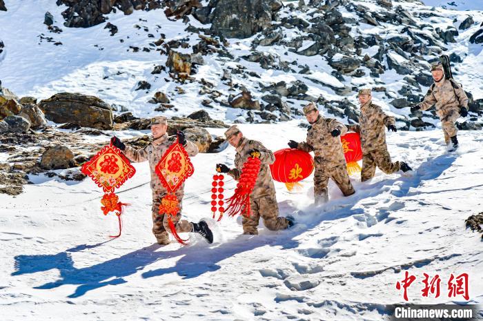 近日,西藏軍區(qū)標(biāo)沙拉錯哨點(diǎn)官兵們喜迎遠(yuǎn)道而來的年貨,有牛肉、羊肉、各種蔬菜水果等,送菜的隊伍還給他們帶來了紅燈籠、中國結(jié)、福字等,萬象更新的新年,哨所官兵們堅守在這里,守護(hù)萬家燈火。
