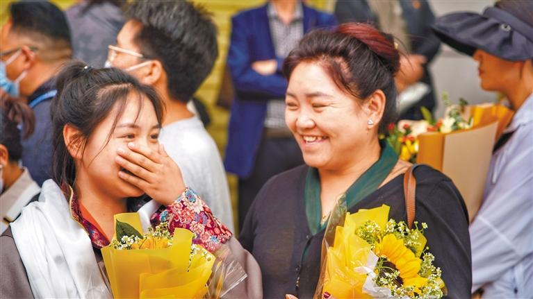 看到兒子從熙熙攘攘的人群中走出來,嘎瑪斯塔趕緊把花遞了上去,順便給了兒子尼瑪一個(gè)大大的擁抱?!鞍l(fā)揮得還行,應(yīng)該可以考進(jìn)理想的大學(xué)?!蹦岈斬Q起大拇指為自己點(diǎn)了一個(gè)贊。