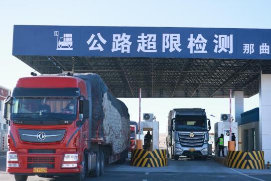 貨車正在通過那拉高速公路那曲超限檢測(cè)站。(西藏自治區(qū)交通運(yùn)輸廳供圖)