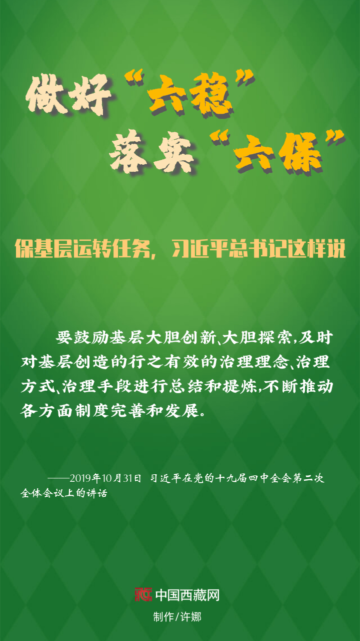 “?;鶎舆\(yùn)轉(zhuǎn)”是推進(jìn)“六穩(wěn)”工作、實(shí)現(xiàn)“六?!蹦繕?biāo)的前提保障。?;鶎舆\(yùn)轉(zhuǎn)事關(guān)全局,近年來(lái),以習(xí)近平同志為核心的黨中央出臺(tái)了一系列基層治理的新舉措,確?;鶎咏?jīng)受考驗(yàn)、有效運(yùn)轉(zhuǎn),奮力實(shí)現(xiàn)各項(xiàng)預(yù)期任務(wù)。