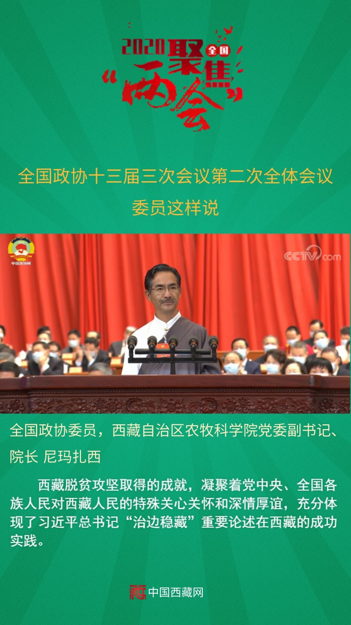 全國(guó)政協(xié)委員,西藏自治區(qū)農(nóng)牧科學(xué)院黨委副書記、院長(zhǎng)尼瑪扎西發(fā)言說,西藏脫貧攻堅(jiān)取得的成就,凝聚著黨中央、全國(guó)各族人民對(duì)西藏人民的特殊關(guān)心關(guān)懷和深情厚誼,充分體現(xiàn)了習(xí)近平總書記“治邊穩(wěn)藏”重要論述在西藏的成功實(shí)踐。