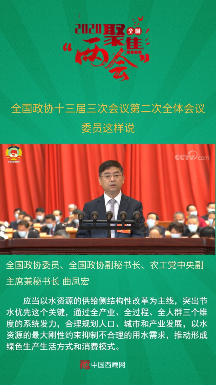 全國(guó)政協(xié)委員、全國(guó)政協(xié)副秘書長(zhǎng)、農(nóng)工黨中央副主席兼秘書長(zhǎng)曲鳳宏發(fā)言說,應(yīng)當(dāng)以水資源的供給側(cè)結(jié)構(gòu)性改革為主線,突出節(jié)水優(yōu)先這個(gè)關(guān)鍵,通過全產(chǎn)業(yè)、全過程、全人群三個(gè)維度的系統(tǒng)發(fā)力,合理規(guī)劃人口、城市和產(chǎn)業(yè)發(fā)展,以水資源的最大剛性約束抑制不合理的用水需求,推動(dòng)形成綠色生產(chǎn)生活方式和消費(fèi)模式。