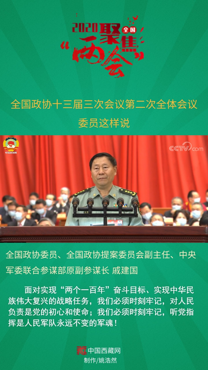 全國(guó)政協(xié)委員、全國(guó)政協(xié)提案委員會(huì)副主任、中央軍委聯(lián)合參謀部原副參謀長(zhǎng)戚建國(guó)發(fā)言說,面對(duì)實(shí)現(xiàn)“兩個(gè)一百年”奮斗目標(biāo)、實(shí)現(xiàn)中華民族偉大復(fù)興的戰(zhàn)略任務(wù),我們必須時(shí)刻牢記,對(duì)人民負(fù)責(zé)是黨的初心和使命;我們必須時(shí)刻牢記,聽黨指揮是人民軍隊(duì)永遠(yuǎn)不變的軍魂!
